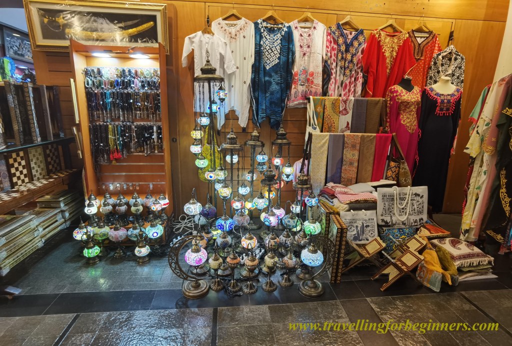 В близост до хотела имаше множество магазини за златни бижута, молове, магазини. Единият Мол, който посетихме имаше и сук, разбира се доста модерен вариант от традиционните арабски сукове (пазари), но въпреки всичко се намираха традиционни дрехи, лампи, както и сувенири. Всяка вечер магазините за златни бижута бяха пълни със семейства, а погледите на жените неминуемо се обръщаха към златните витрини.