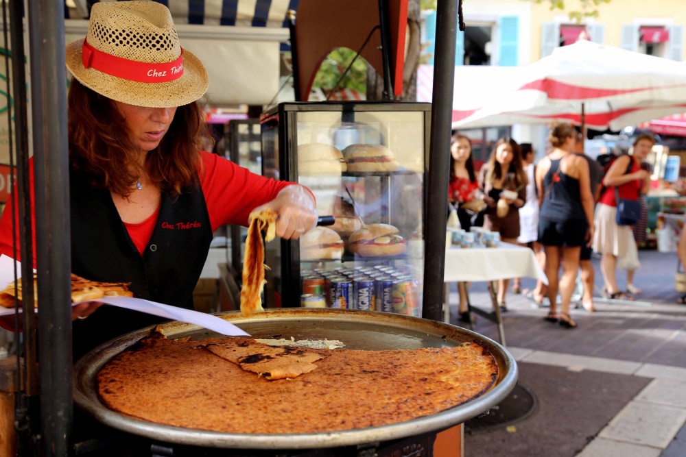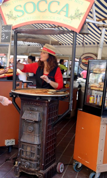 Ница – Ден 5:Сряда закуската започна със сока (socca) от сутрешния пазар в стария град. Хляб, приготвен от нахутено брашно, мазнина и черен пипер, приготвен на много тънък пласт на голяма тава. Интересно е да се опита, много засищащо хапване, но и много мазно.След като закусихме тръгнахме пеша до Парк дю Шато в Ница – красив парк, разположен на скалист хълм, от който можеш да се насладиш на едни от най-красивите гледки към Ница, които те хипнотизират … искаш завинаги да останеш там точно в този момент и да попиеш цялата красота, която ти предлага тази част от света.До паркът може да стигнете, изкачвайки около 200 стъпала, или с лифт, който е безплатен.Казват, че този хълм е мястото, на което първоначално е възникнала Ница, а днес много хора използват разкошните гледки, за да си направят пикник, да спортуват или просто да се разходят, за да потърсят вдъхновение.
