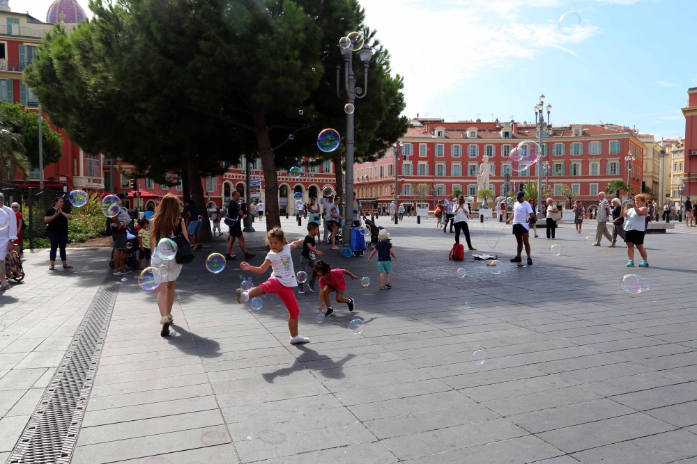 Ница – Ден 2:Събудихме се рано сутринта в неделя, но към 8 часа Ница още спеше. По уличките се носеше уханието на току що изпечени кроасани и хляб, които са и изключително вкусни. Ница ни върна във времената, когато купуваш хляб от пекарната и докато се прибереш вече си изял половината…. толкова е вкусен. След пекарната се разходихме из пазара, където сутринта продаваха всякакви плодове, зеленчуци, прясна риба, сувенири, цветя и … и сока, традиционно хапване тук, което предстои да опитаме.Все още изморени от пътя, но любопитни, бяхме планирани да се качим на туристическото влакче, което обикаля стария град на Ница, но като тръгнахме на обиколка видяхме, че в Ница тази неделя има голямо вело състезание, което продължи целия ден и туристическото влакче не работеше. Затова използвахме да обиколим парка, където са направили малки фонтанчета, извиращи от плочките, за да разхлаждат – радост за децата, но и за нас. Удоволствието да се разходиш измежду водата е неописиумо, сякаш ходиш по дъгите, които слънцето рисуваше за нас.Малко по-късно следобед отидохме на плаж в Ница. Плажът в Ница е каменист, не пясъчен, но водата е разкошна. Синият цвят те поглъща. Но на другия ден решихме да отидем до Вилфранш, тъй като предварително бяхме проучили, че там плажът е пясъчен.Вечерта Ница отново бе сложила своя нощен блясък и сияше … сияеше пълна с живот.