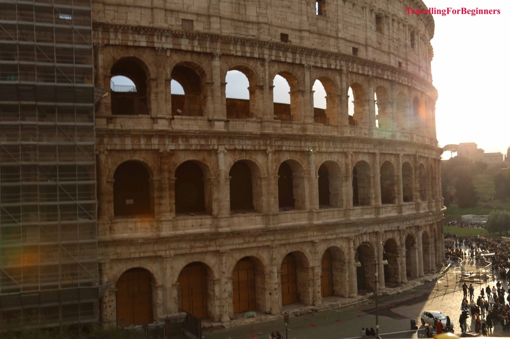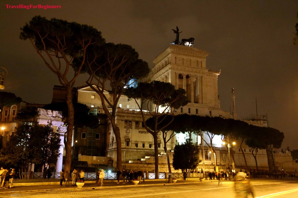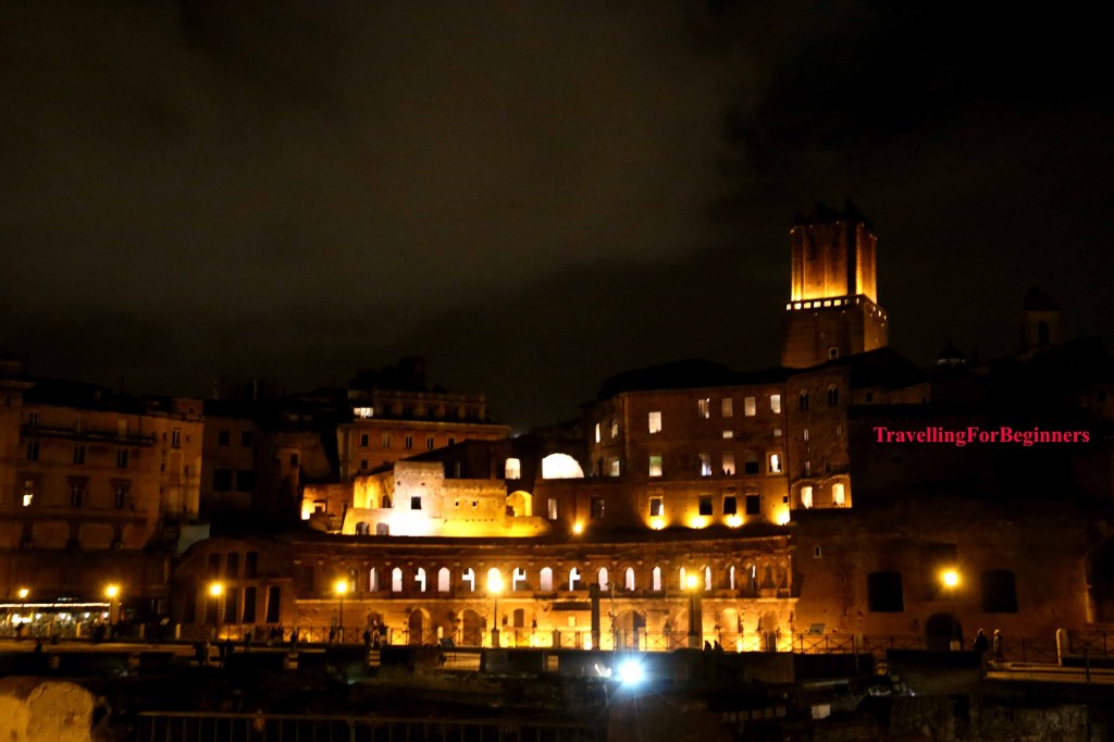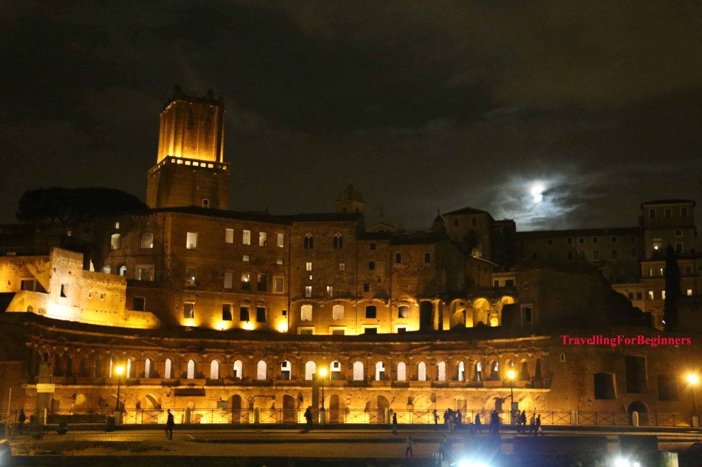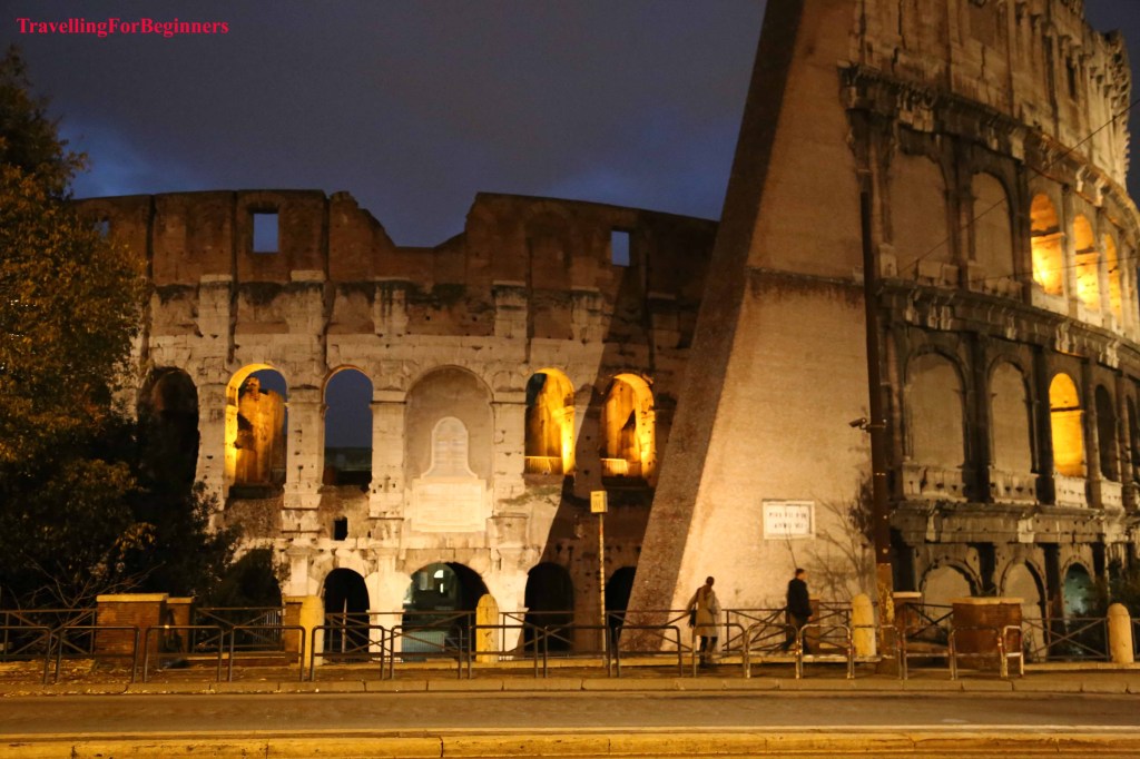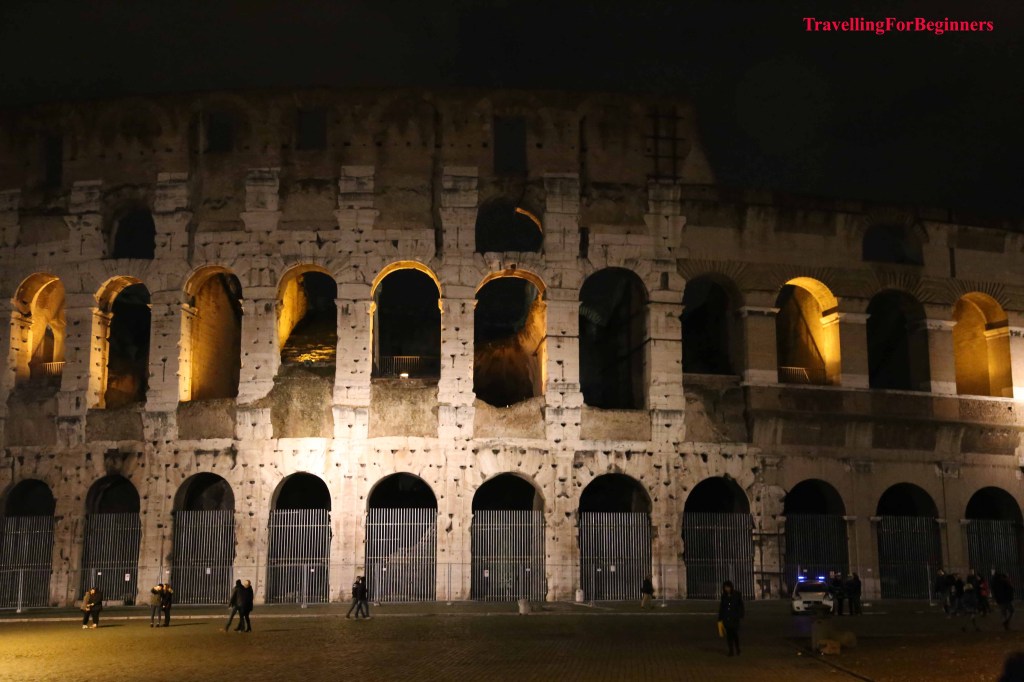 Първата вечер се насочихме към Колизеумът – разкошен през нощта. Окъпан целият в златиста светлина, пълнолуние и цялото му величие, нашепващ истории за древен Рим. Построен през 72 г. Колизеумът в Рим е най-големият амфитеатър в света и най-популярната забележителност на Италия. Един от най-емблематичните символи на Древен Рим е бил построен като дар за римляните, на който да се провеждат различни игри и представления, и който да покаже на света възможностите на римските строителни инженери. Преоблечени, като древни римляни, мъже приканват да се снимате с тях, разбира се срещу съответната цена (около 10 евро).