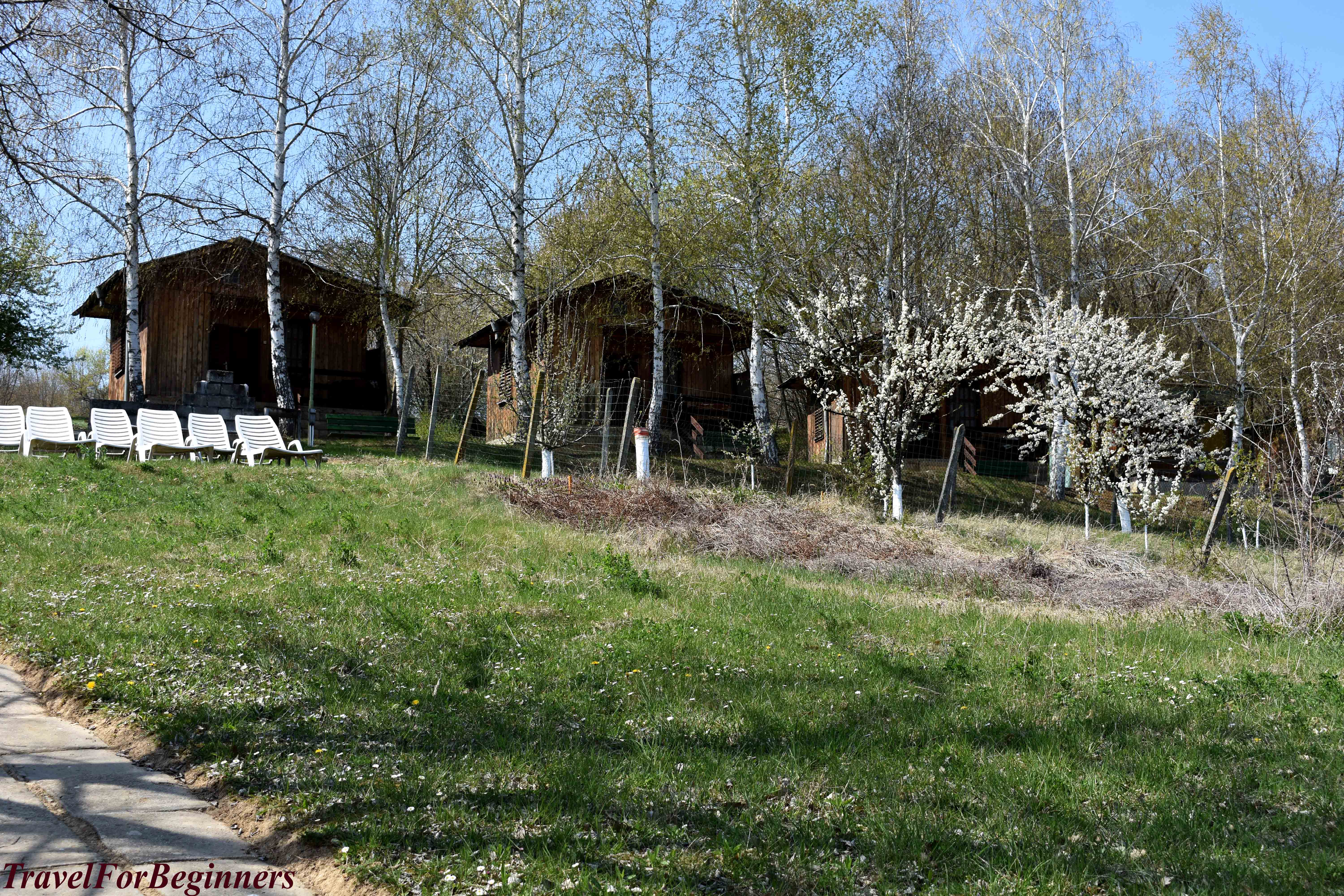 Дървени бунгала в почивната база са се приютили под клоните на върбите и лозови асмички, и само на няколко крачки – язовир Тича. Домакините на