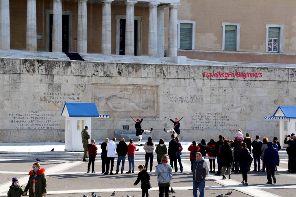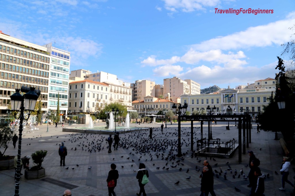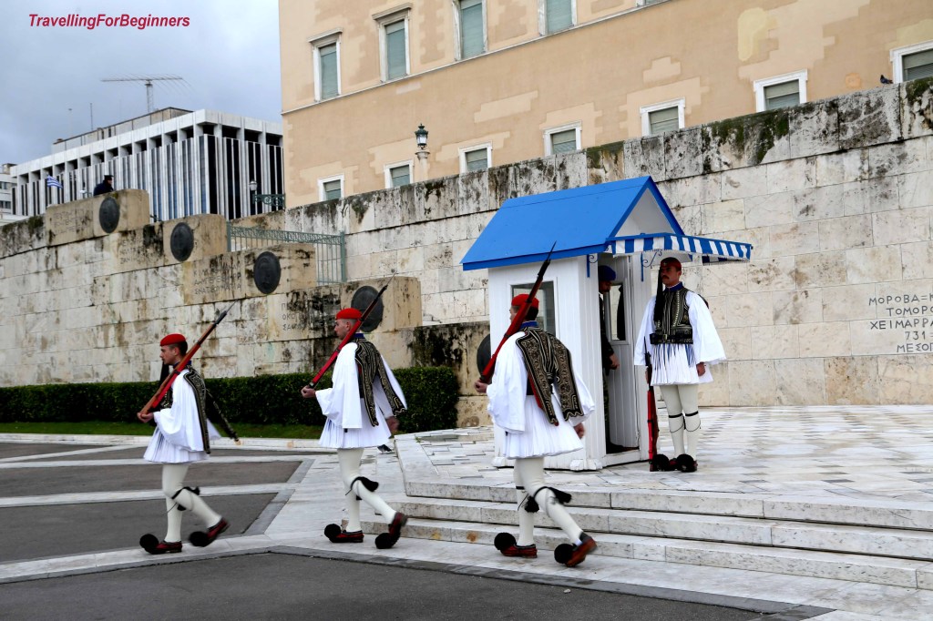 Първа спирка площад Синтагма – централният площад на града и едно от най-известните места в Атина. Площадът е кръстен на Конституцията . На площада се намира стария кралски дворец – днес сграда на Парламента, пред който на всеки кръгъл час се изпълнява церемония по смяна на стражата от гръцки войници, облечени в традиционни дрехи – бяла риза-рокля, колан, бял клин, червена шапка с дълга опашка, наметало, оръжие и обувки с огромни помпони на тях.