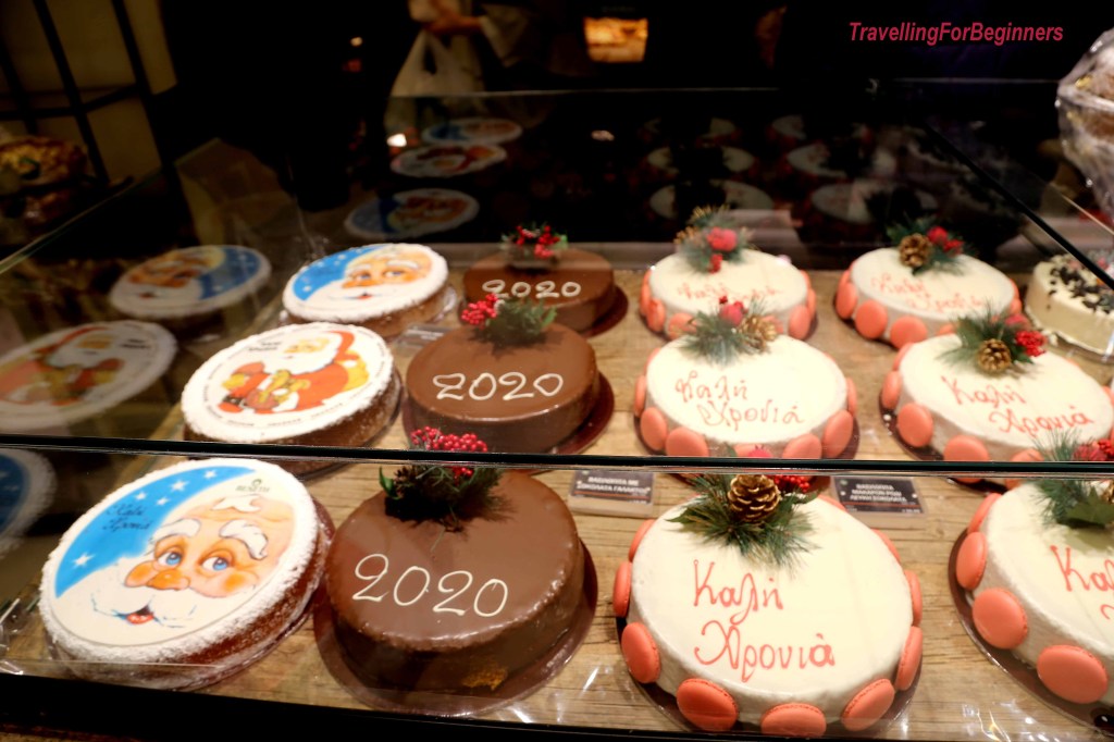 Безкрайно Коледно настроение, шопинг, Коледни песни и усмивки препълват площадите и Моловете в Атина. Площад Синтагма няколко дни се огласяше от разкошна музика и песни на духов оркестър, а сладки изкушения, примамваха от витрините – изобилие от торти, бисквити, баклавички.