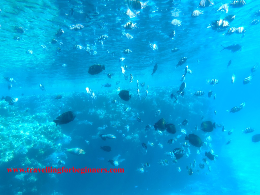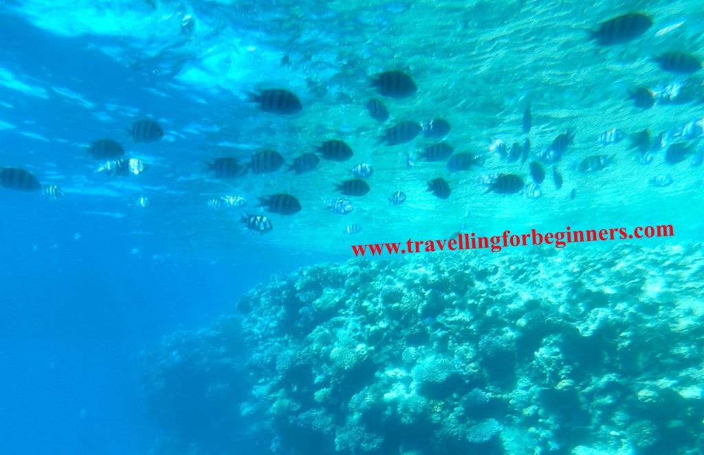 На втората седмица се осмелих да се гмурна с очила и шнорхел, за наш късмет на нашия плаж в морето на сравнително плитко можеше да се насладиш на изобилие от цветни рибки. Това е нещо, което не трябва да пропускате в Червено море. Сякаш гледаш филмчето за Немо на живо. Водата е кристално прозрачна, чиста и много солена.
