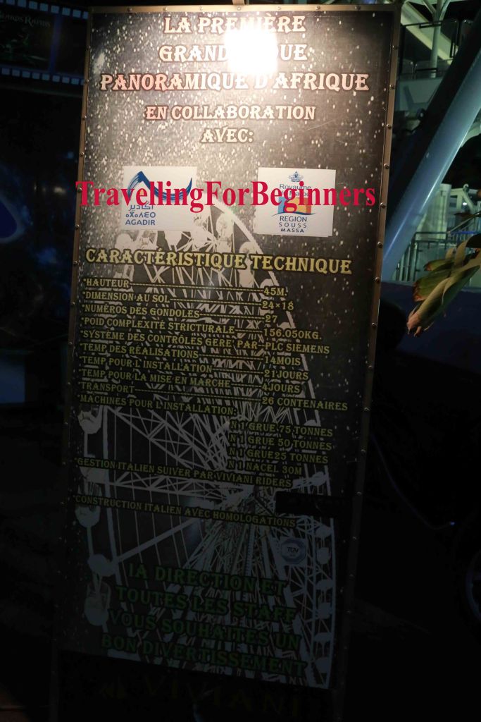 На юг от крайбрежната алея в Агадир ще намерите La grande Roue de Agadir, най-голямото виенско колело в Африка. Високо е 45 метра с 27 гондоли. Готови ли сте за едно кръгче 🙂