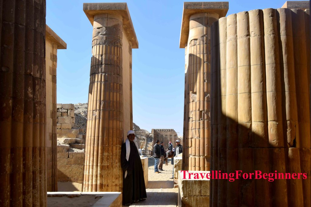 Пристигайки в Saqqara Стъпаловидната пирамида на Джосер е първото нещо, което виждаш. Но, за да стигнете до нея, трябва да преминете през храм, който е част от правоъгълния царски комплекс, който я заобикаля.