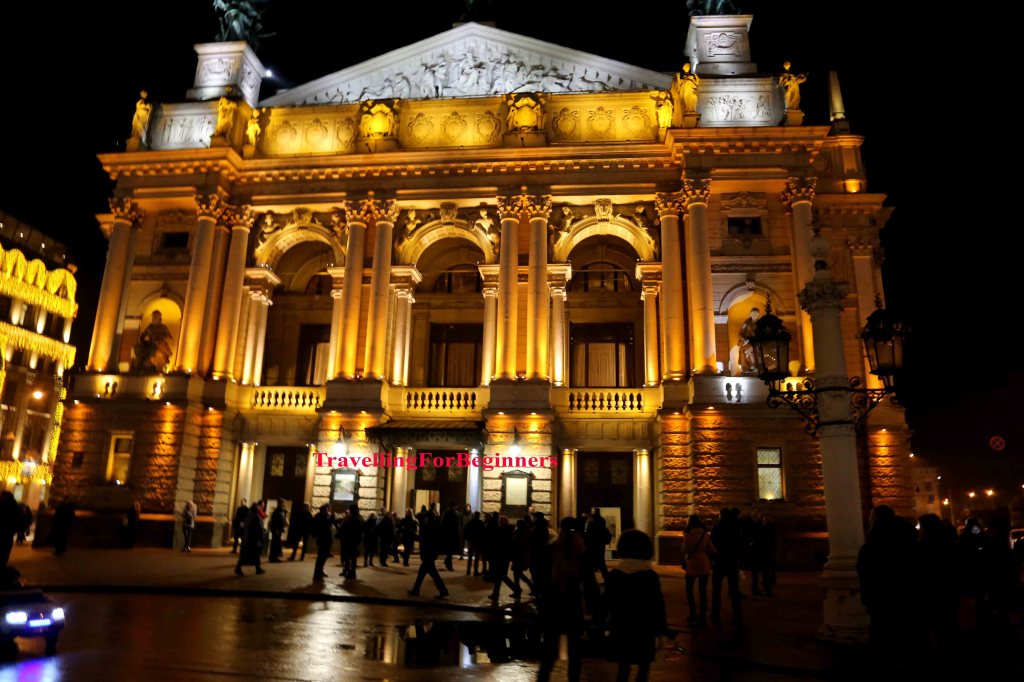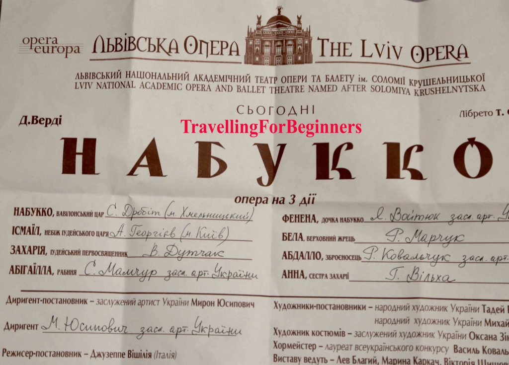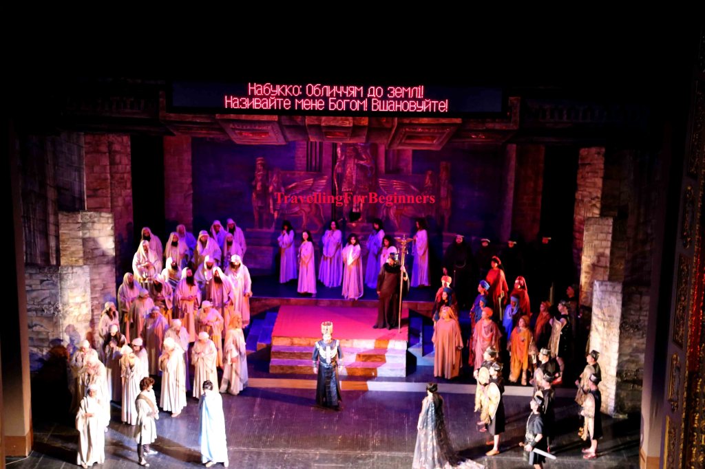 На опера в Лвов е вълнуващо изживяване. Множество хора, очакващи да гледат Набуко. Вдъхновяващ интериор и зашеметяващо изпълнение!