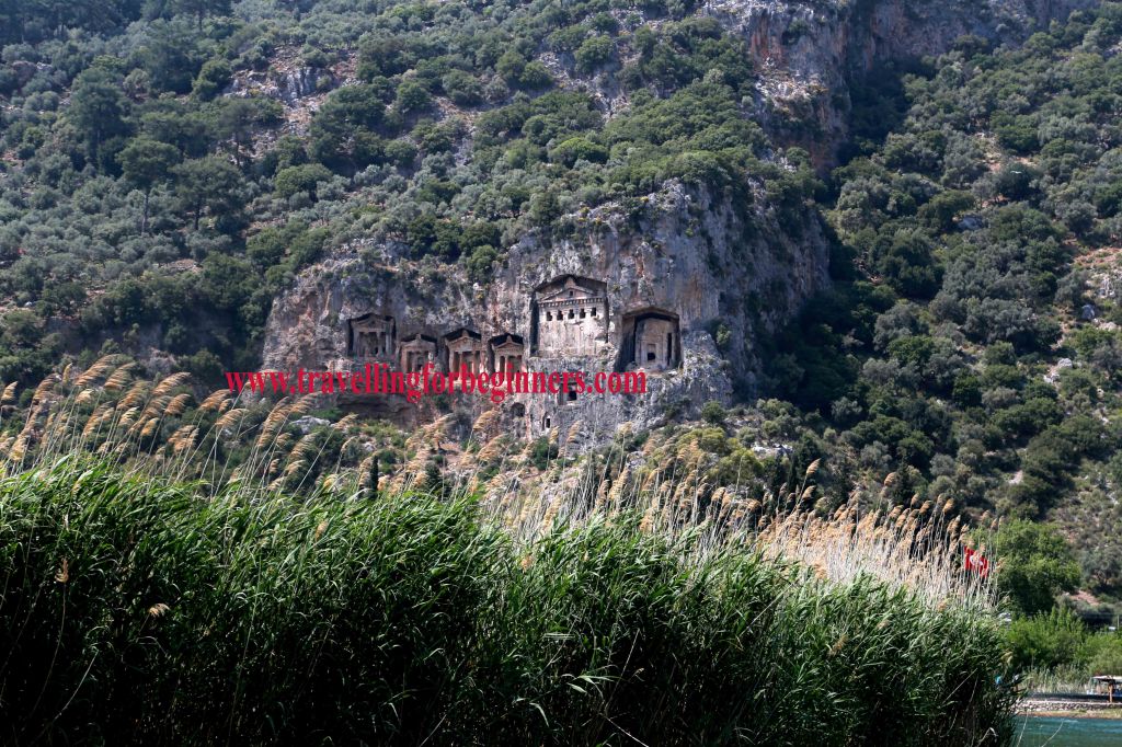 От лодката се разкрива необичайна гледка – удивителни акрополи, издълбани в скалите изникват над тръстиките. Гробниците са построени по подобие на ликийските.